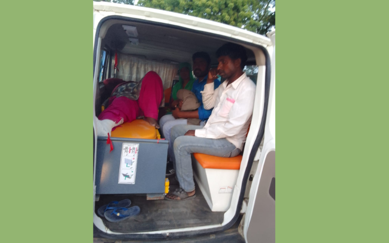 (i) On-call service: Whenever we receive information from the patients’ families or from a hospital, for any urgent need, such as cases of accident, deliveries or serious illness, then the ambulance takes the patient to the hospital. The ambulance reaches their place which is interior villages and then takes them to the hospital. The hospitals are government hospitals at the block level, district headquarters, or even the nearest big city, if the case so requires.